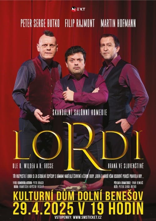 Rozverná komedie o třech rozpustilých slovenských lordech, kteří si v londýnském pánském klubu vyprávějí o svých milostných úspěších. Zážitky jsou to košilaté, ale ten největší na lordy teprve čeká a diváci si jej vyslechnou tak říkajíc z první ruky.. Kdo tuto komedii již viděl, tak ji určitě bude chtít vidět zase, a kdo ji ještě neviděl, neměl by si ji nechat ujít. Bavit se bude celý sál. Dámy, vezměte do divadla i své protějšky! Hra je vhodná i pro muže, kteří před návštěvou divadla dávají přednost vůni kouře doutníků a chuti skvěle vychlazeného bourbonu…Naopak školní dítka do 15 let a puritánsky založené ženy nechte raději doma. Hrají: Martin Hofmann, Filip Rajmont, Peter Serge Butko.