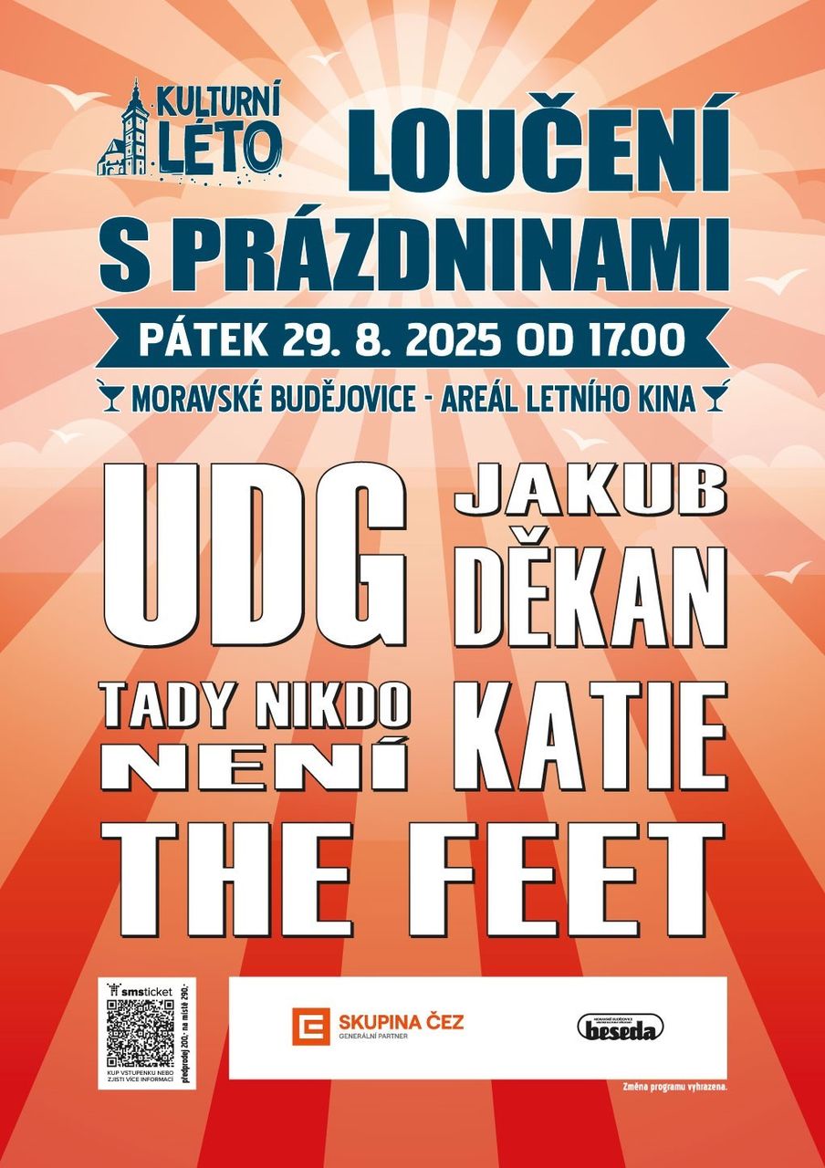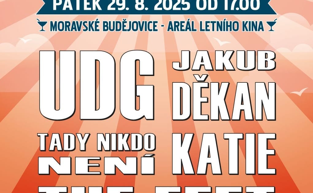 V pátek 29. srpna od 17:00 v areálu letního kina Moravské Budějovice se rozloučíme s prázdninami tak, jak se sluší – hudbou, atmosférou a přáteli.