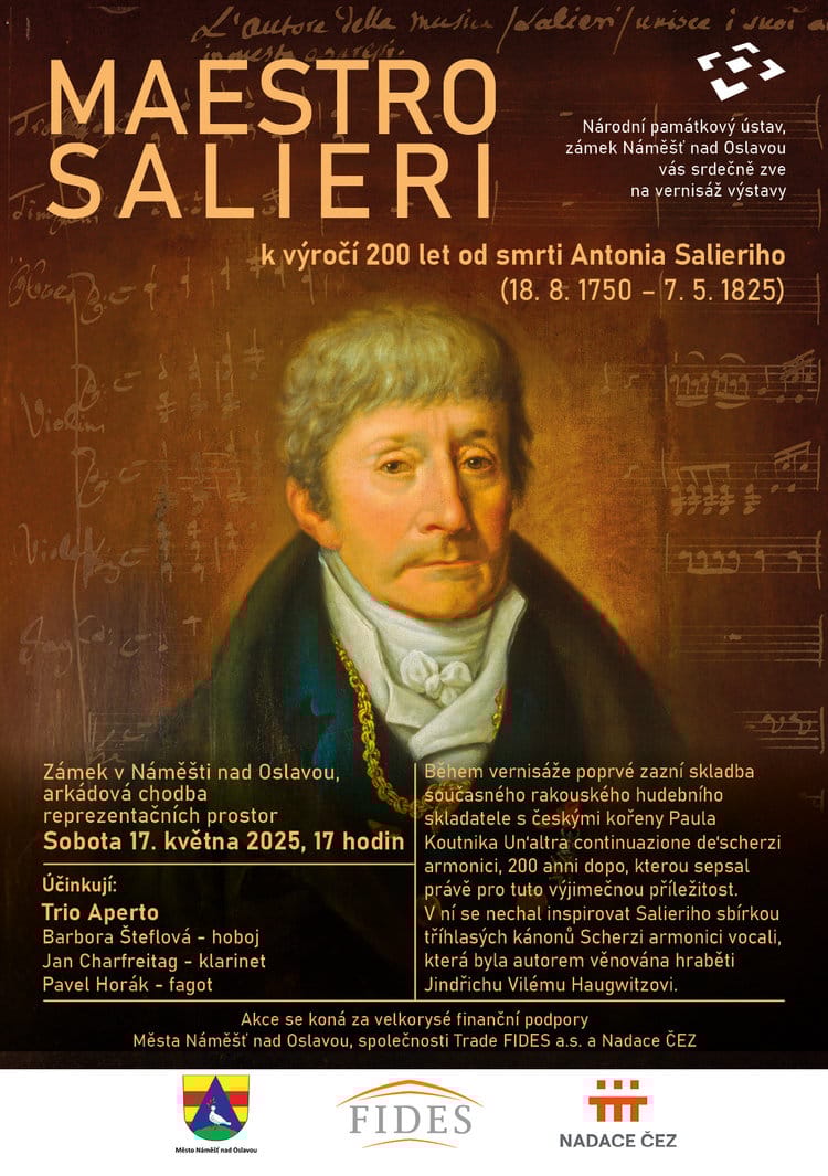 V souvislosti s výročím 200 let od smrti Antonia Salieriho připravilo Moravské zemské muzeum v Brně ve spolupráci s Národním památkovým ústavem výstavu, která po celou letošní návštěvnickou sezonu připomene život a dílo Antonia Saleriho, jeho přátelství s hrabětem Jindřichem Vilémem Haugwitzem a náměšťský zámek coby místo, které Salieri osobně navštívil a zanechal zde i část svého hudebního odkazu.