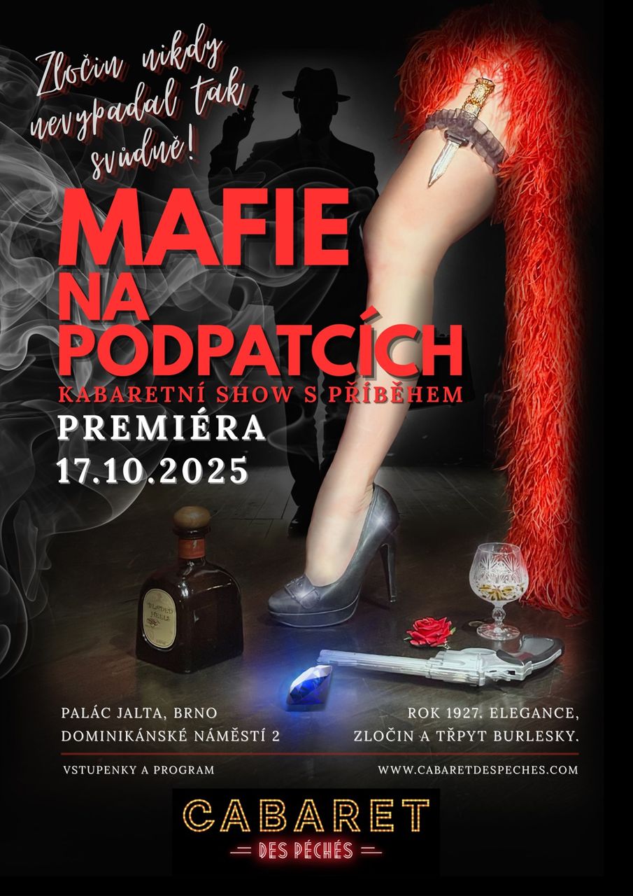 „Mafie na podpatcích“ je parodická kabaretní show v podobě tanečního divadla a revue, kde se mísí humor, svůdnost a nadsázka. Děj sleduje propracovaný příběh plný intrik, komických zvratů a stylizovaných mafiánských postav. Každý umělec ztvárňuje vlastní roli a skrze tanec, herectví a kabaretní čísla vtahuje diváky do světa podpatků, kouře a gangsterské elegance.