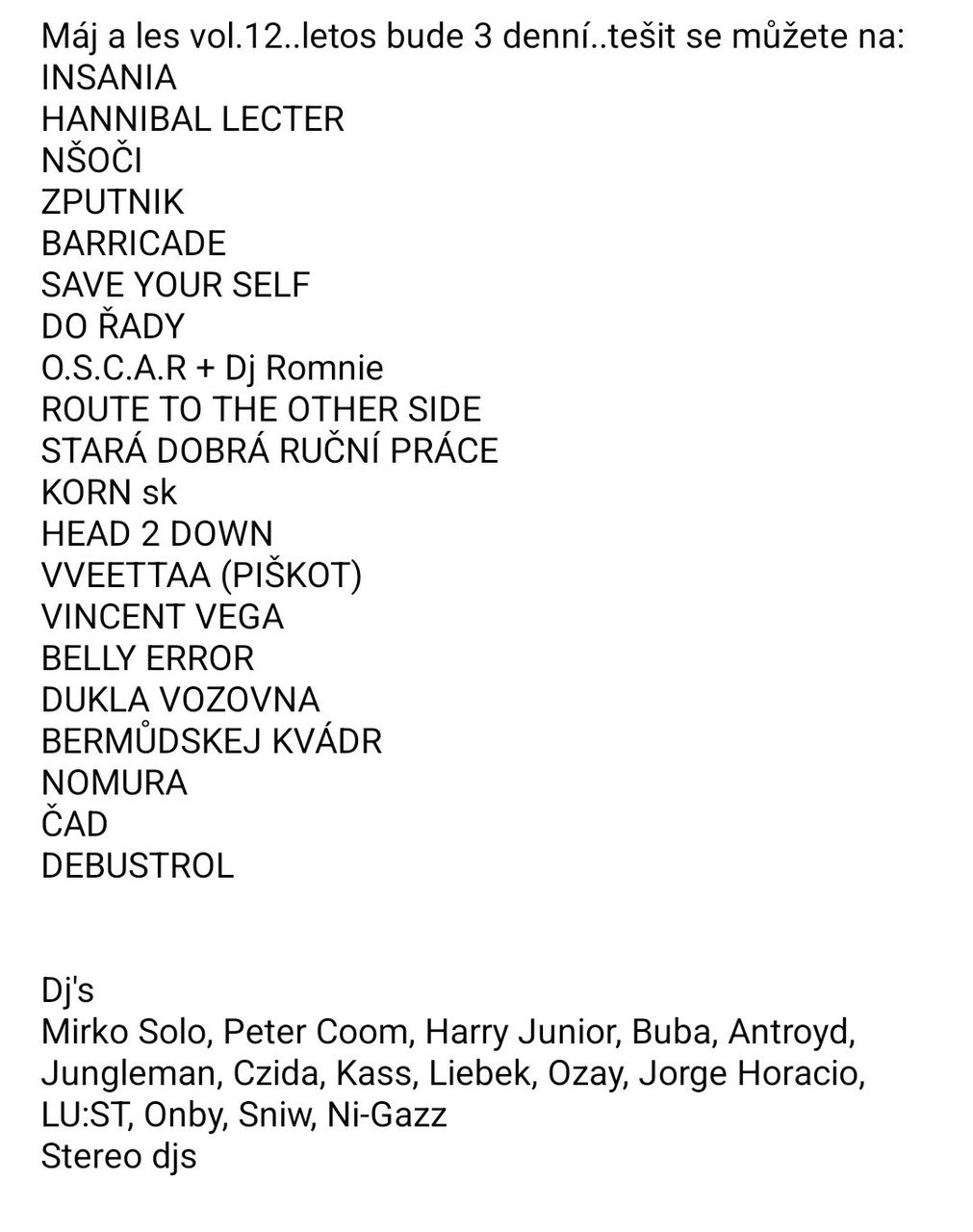 12. ročník festivalu Máj a Les.!! Přijed si užít pohodu nádherného areálu v krásném prostředí Chřibů.