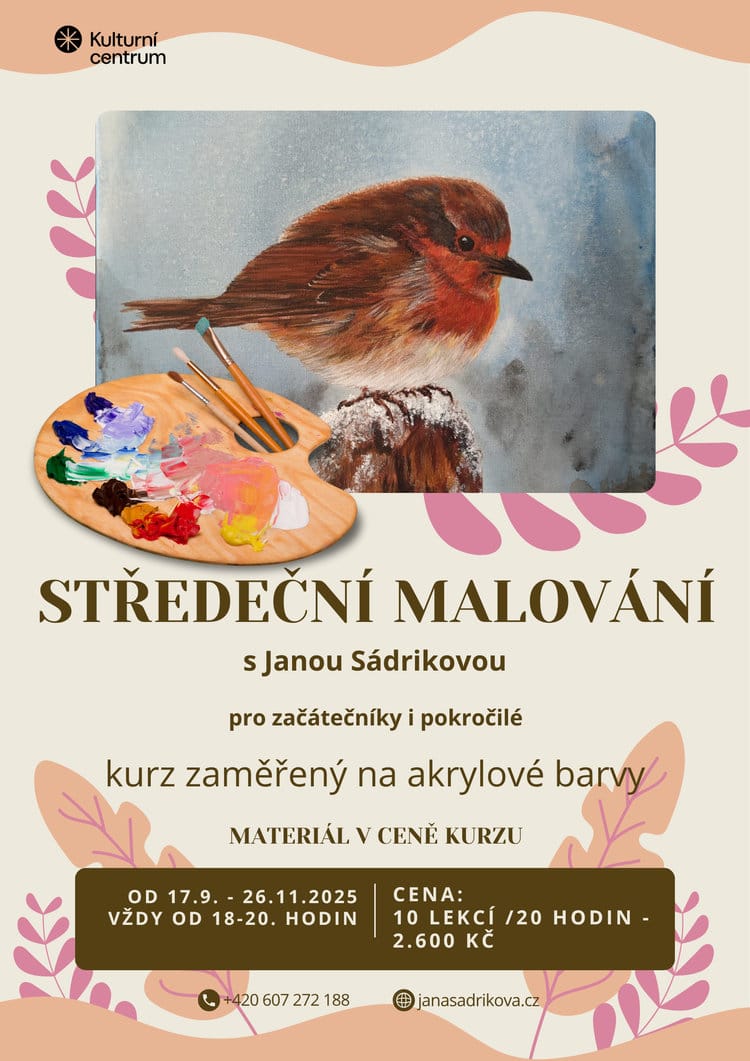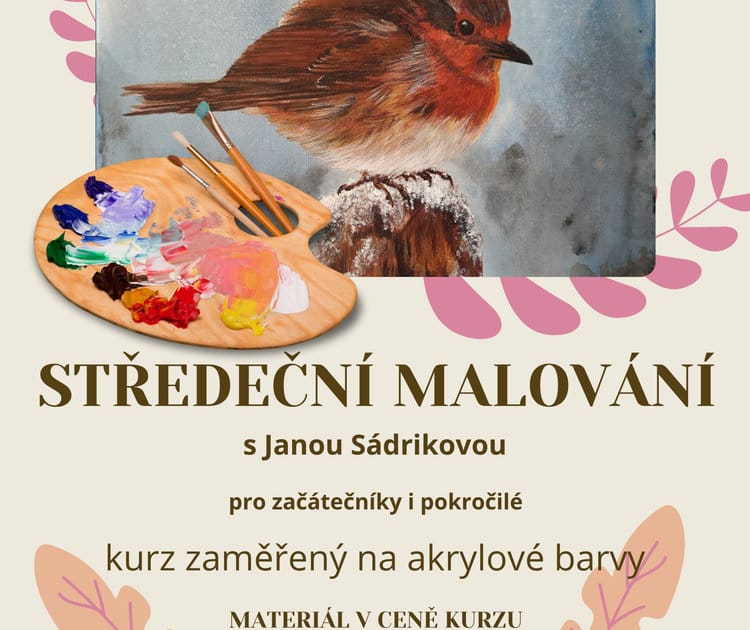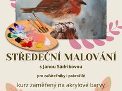 STŘEDEČNÍ MALOVÁNÍLektor: Jana SádrikováZaměření: Akrylové barvy (pro začátečníky i pokročilé)Materiál: v ceně kurzu