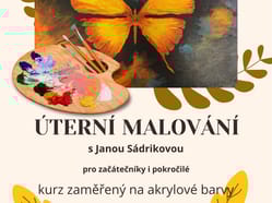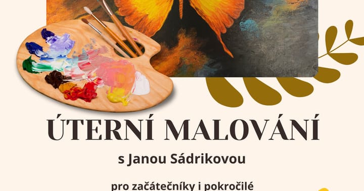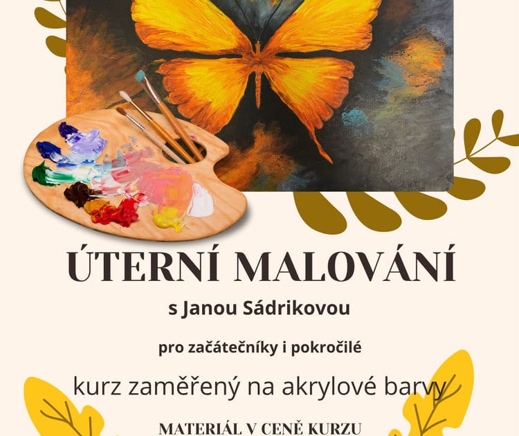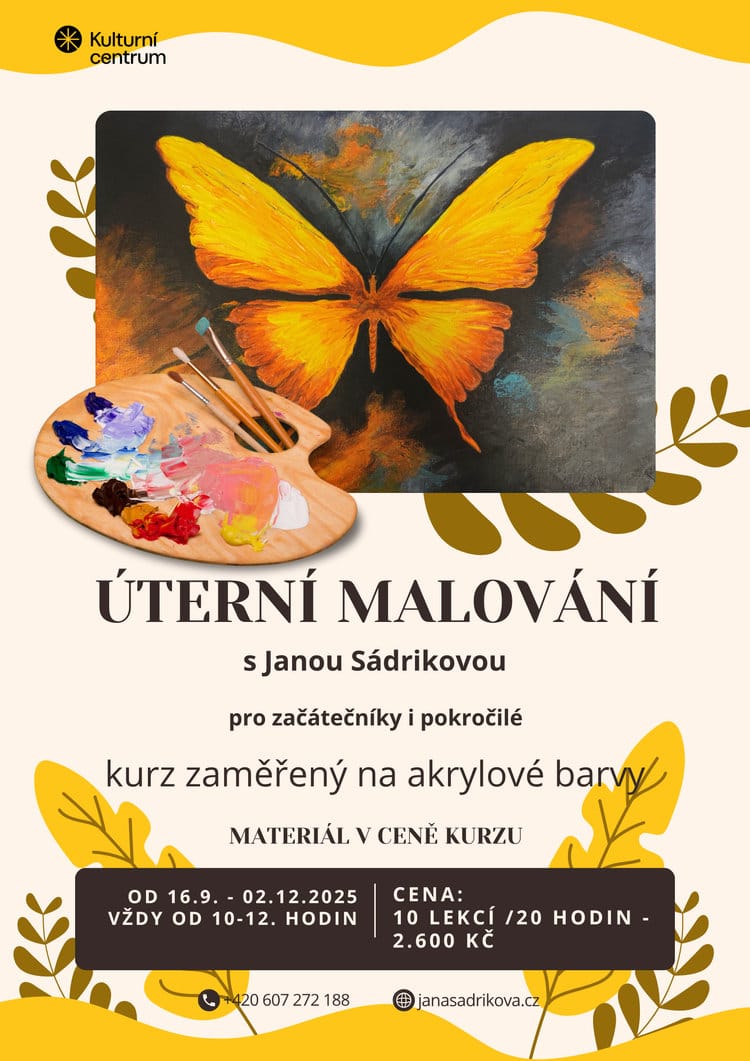 ÚTERNÍ MALOVÁNÍLektor: Jana SádrikováZaměření: Akrylové barvy (pro začátečníky i pokročilé)Materiál: v ceně kurzu