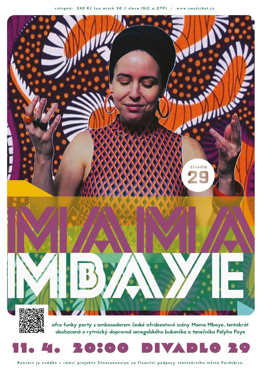 Afro funky party s ambasadorem české afrobeatové scény sedmičlennou kapelou Mama Mbaye a jejich hostem senegalským perkusistou a tanečníkem Falym Fayem.