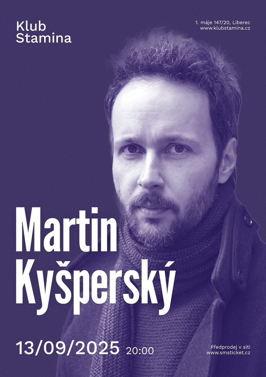 Martin Kyšperský je skladatel, textař a zpěvák známý především jako frontman brněnské kapely Květy. Jeho hudba mimo jiné zní ve filmech jako Veterán, Na krátko, Kobry a užovky nebo v seriálech Iveta a Svět pod hlavou. Píše také scénickou hudbu pro divadla napříč republikou, spolupracoval s Lenkou Dusilovou, moderuje v rádiu Proglas, vydává knihy nebo se věnuje herectví. Za své poslední sólo album „Vlakem“ dostal cenu Anděl v kategorii Alternativní hudba. Ve Stamině představí jak svoji sólovou tvorbu, tak známé písně legendárních Květů.