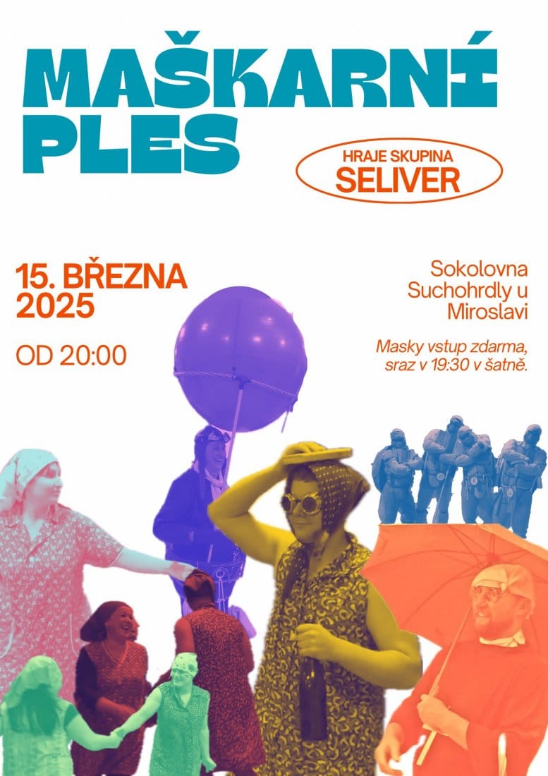 Maškarní ples určený dospělým začne v sokolovně v Suchohrdlech u Miroslavi ve 20 hod. K tanci i poslechu zahraje skupina Seliver. Kostýmovaní mají vstup zdarma a sraz masek je už v 19:30 hod.