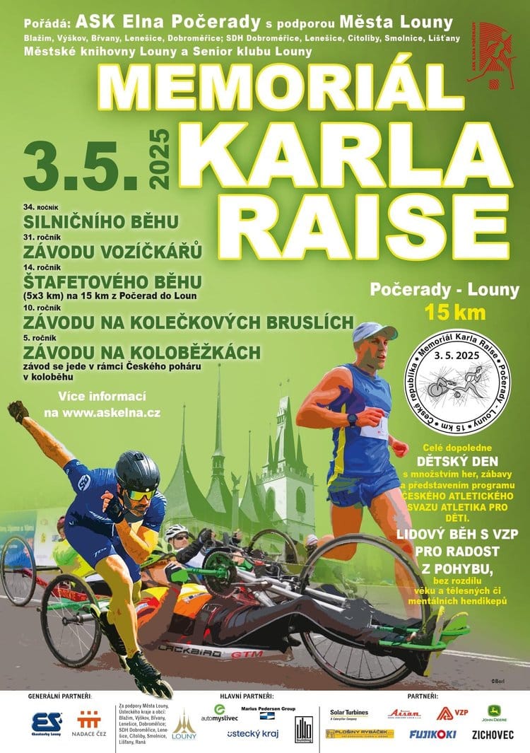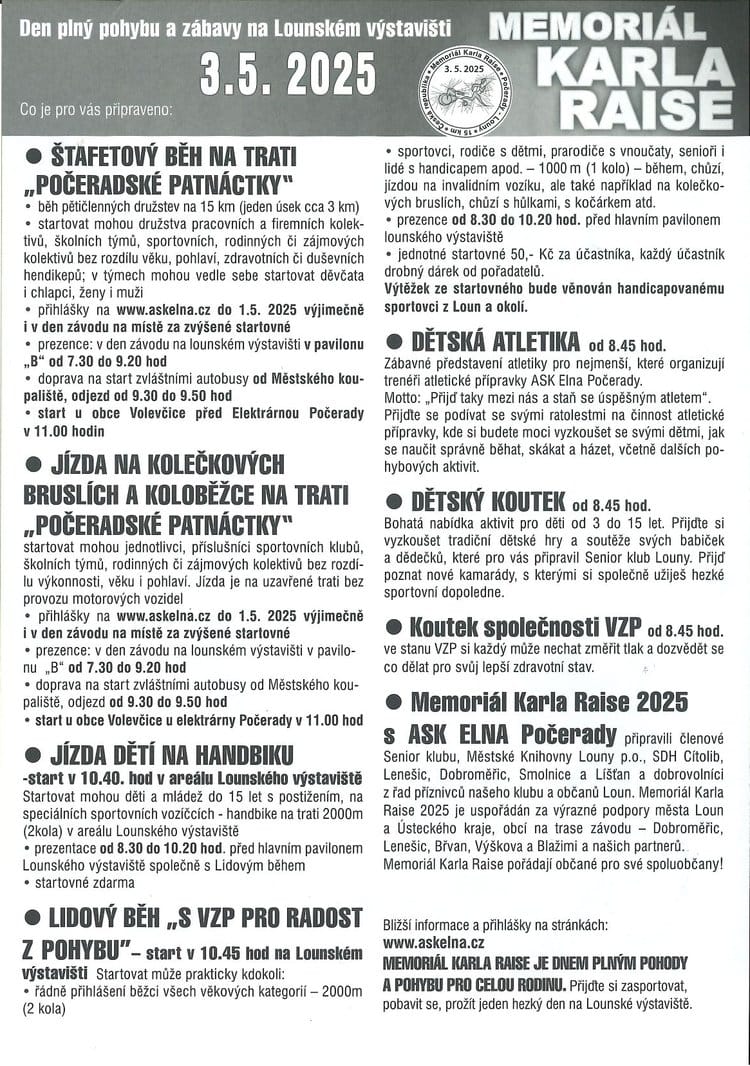 Atletický oddil ASK ELNA Počerady s podporou města Louny a partnerů Vás zve na Memoriál Karla Raise.