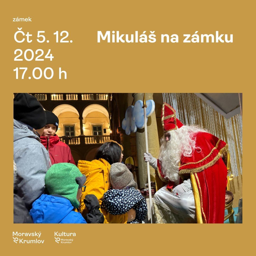 Velkolepá Mikulášská nadílka nejen pro děti v mystickém prostředí renesančního zámku v Moravském Krumlově, kde nechybí zábavný program v podobě plnění úkolů a přání. Součástí je samozřejmě i andělské nebe a pořádné čertovské peklo s hodně tlustou knihou hříchů… Začátek akce v 17 hod. na arkádovém nádvoří zámku.