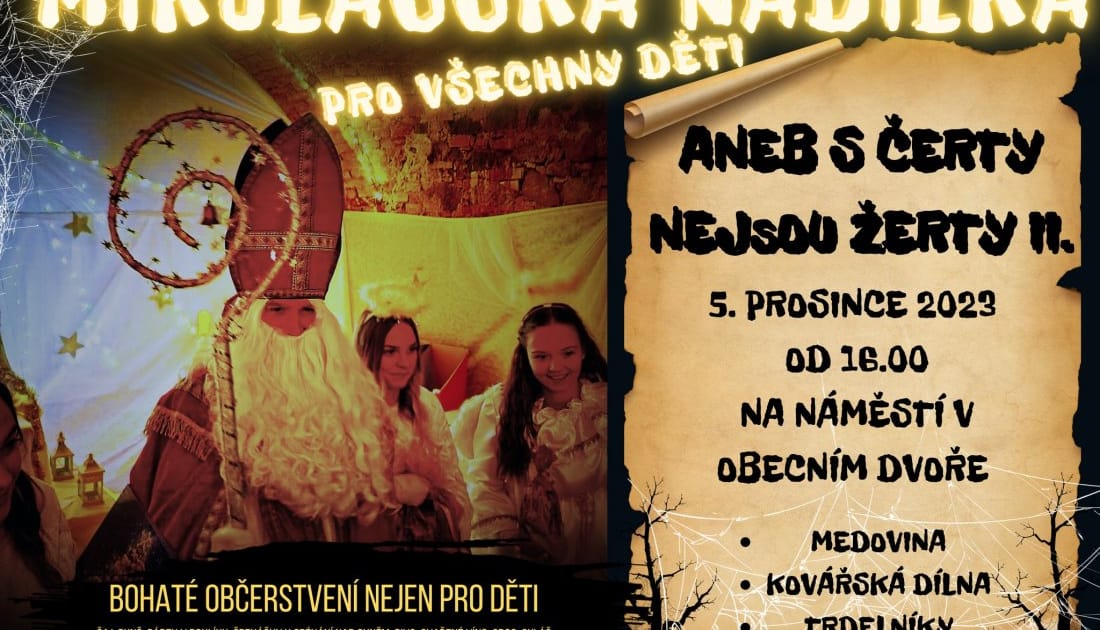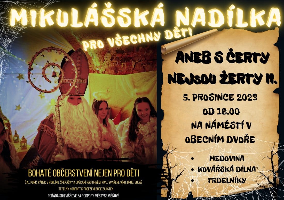 Mikuláš dorazí 5. prosince i do Višňového a od 16 hod. nabídne na náměstí v tzv. Obecním dvoře program pro všechny děti s názvem S čerty nejsou žerty. Chybět nebude ani kovářská dílna, občerstvení a možnost si opéct špekáčky nad ohněm.