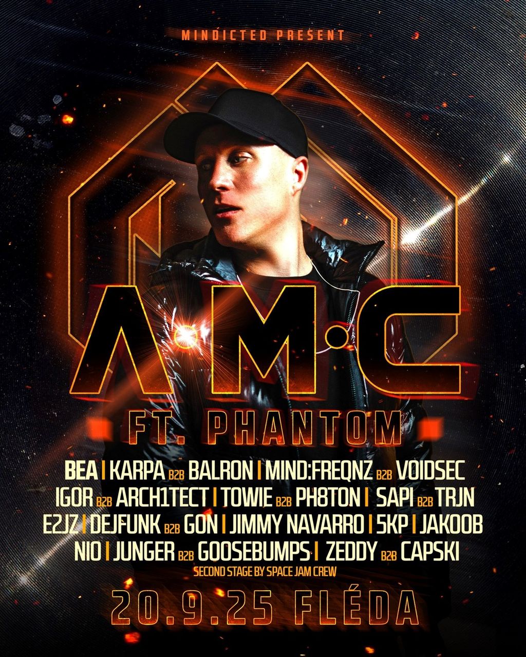 Hlásíme návrat na Flédu, tentokrát v opravdu velkém stylu! Svojí návštěvou totiž Brno poctí živoucí legenda, nejlepší DNB DJ na světě, vrchní krotitel zlomeného beatu Alex Mark Calvert aka A.M.C! Ten přiveze svoji pekelnou show plnou nečekaných double/triple/quadra dropů, absolutně nesmyslný počet tracků za hodinu, ty nejneočekávanější switche a k tomu navrch přidá poctivou dávku těch nejostřejších nevydaných tracků! Na mikrofon ho k tomu doprovodí jeho věrný druh MC Phantom a my vám zaručujeme, že nabušenější set letos v Brně neuslyšíte!