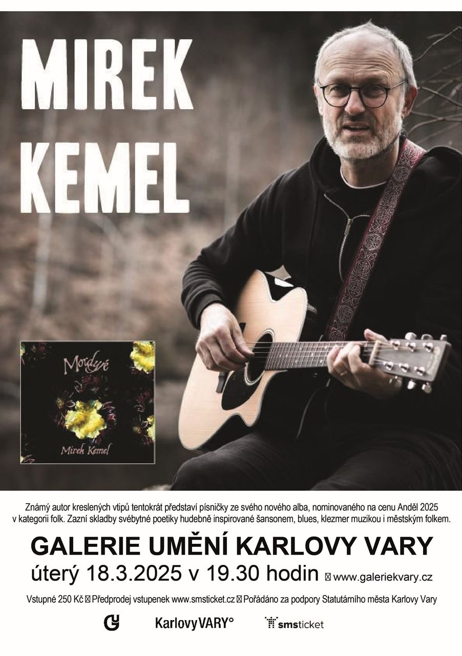 Mirek Kemel je známý především jako vynikající karikaturista (pravidelně přispívá do Práva, Reportéra, Novinek.cz), ale již 15 let též jako folkový písničkář. „Muzika mi pomáhá přežít ten stres z každodenní povinnosti odevzdat kresbu včas. A dovoluje mi ponořit se hlouběji do sebe, do svých příběhů bez nutnosti být vtipný a aktuální,” doplňuje autor, jehož písňové texty i melodie jsou na rozdíl od kreslených vtipů krásně poetické, jemné a introvertní. Ve svých textech dokáže být sdělný a přesný, pracuje se srozumitelnými, ale zároveň poetickými metaforami, těží z přirozeného hlasu. Kemel je osobitým šansoniérem, který s akordeonem a kytarou v ruce vyzpívává své prožitky a příběhy inspirované skutečně prožitými událostmi, které vesměs známe. Osobitou poetiku autorských textů výtečně doplňuje hudební složka, která se kromě šansonu a balady inspiruje v klezmer i balkánské muzice, blues, městském folku i chytlavých hospodských popěvcích. Loni na podzim Mirek Kemel pokřtil své již páté autorské album Mordyjé! (před tím vydal CD Krajem šel anděl (2011), Nic víc (2014), Ryby, raci (2018) a Vlčí stopy (2021). „Tematicky je album velice pestré. Jsou na něm písničky nové, které reagují na současný stav světa, ale i písničky starší, lyričtější, které jsme oprášili a vytáhli znovu na pódia v nové podobě. Oproti starším deskám je na něm více rychlých a našláplých písniček.” líčí Mirek Kemel. A právě nové skladby budou tvořit základ karlovarského koncertu, na který jste zváni v úterý 18.3.2025 od 19.30 hodin. Mirek Kemel zazpívá a zahraje na kytaru a foukací harmoniku, Tomáš Görtler na akordeon.