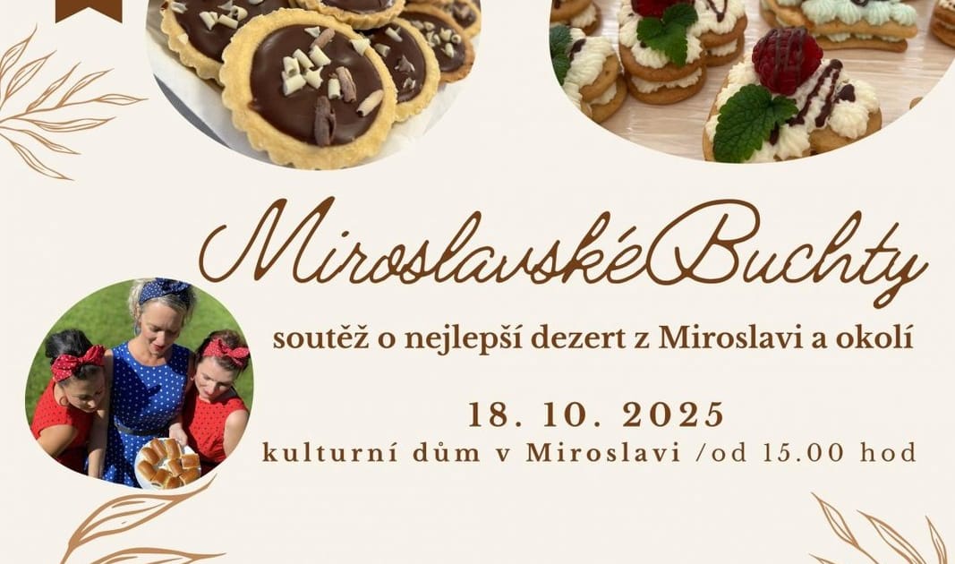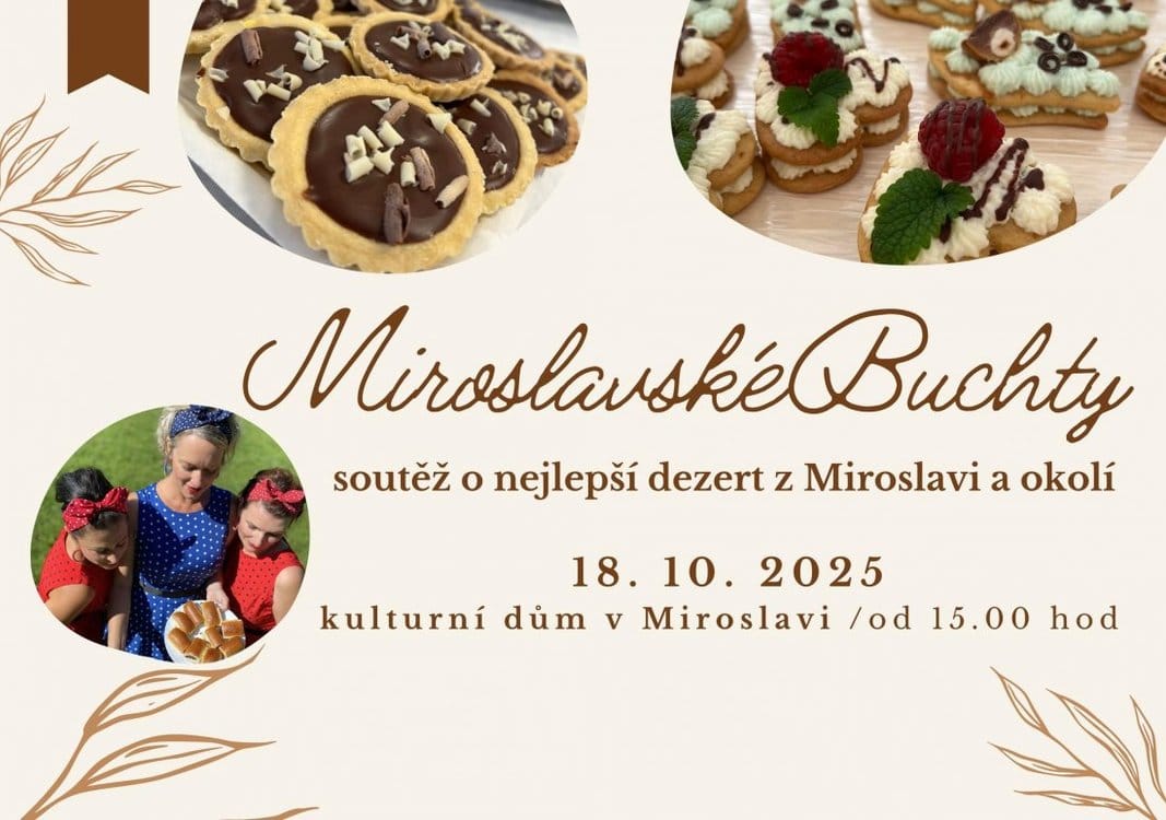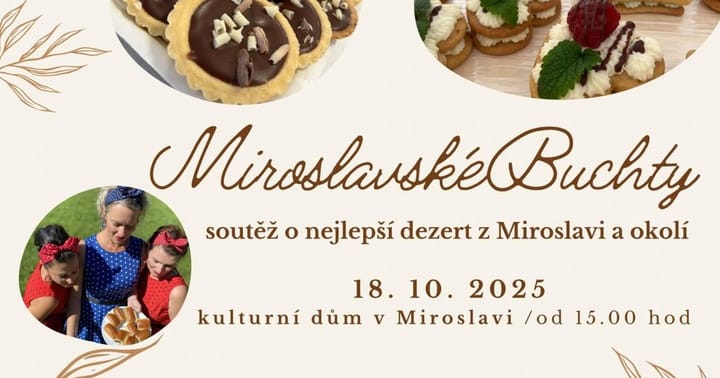 Soutěž o nejlepší buchtu nebo koláč, ať už slaný nebo sladký. Hodnotit bude odborná porota a ochutnávky budou nejen domácích výtvorů, které si zasoutěží, ale i vín od miroslavských vinařů. Během akce bude pro návštěvníky přichystán také doprovodný kulturní program.