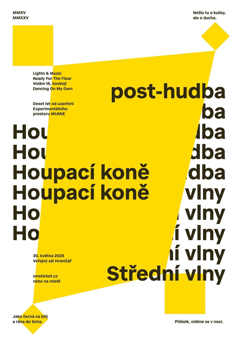 Nostalgie je sice nejsilnější emoce, ale necháme ji jenom tak problesknout. V sestavě desek Hotel Palace a Everest zahrají Houpací koně. Prapor „času po Bowiem“ ponesou Střední vlny, ve kterých je slyšet hlas Šampóna ze Sporto a Prodavače, a post-hudba se svou aktuální nahrávkou Nad prázdnou nocí kroužili sokoli. Šampónovi i Tomášovi s Dominikem měla MUMIE v době svých heydays tu čest poskytnout místo na baru. Jejich přítomnost „v díře“ je nesmazatelně vepsaná do tagu #mojescena a tenhle večer tak bude v povolaných rukách.