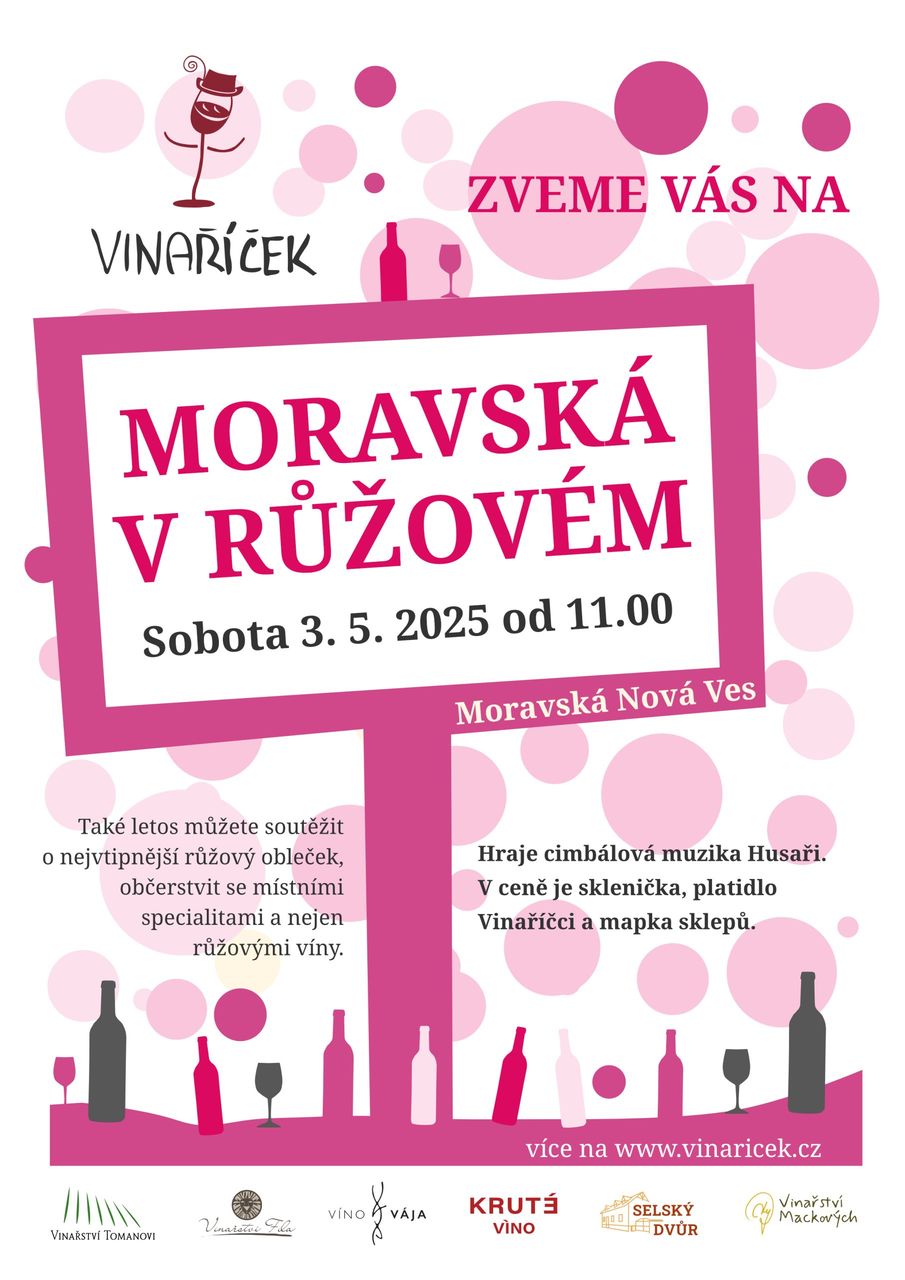 Také letos můžete soutěžit o nejvtipnější růžový obleček, občerstvit se místními specialitami a zazpívat si u cimbálové muziky Husaři. Při vyhodnocení růžových oblečků si společně připijí všichni účastníci a organizátoři akce.