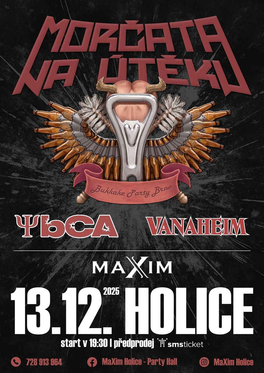 Po roce se do MaXima vrací čtveřice brněnských komiků Morčata na útěku se svojí jedinečnou show. K tomu je doprovodí banda loupežníků YBCA, taktéž z Brna. Večer otevřou vikingové Vanaheim.