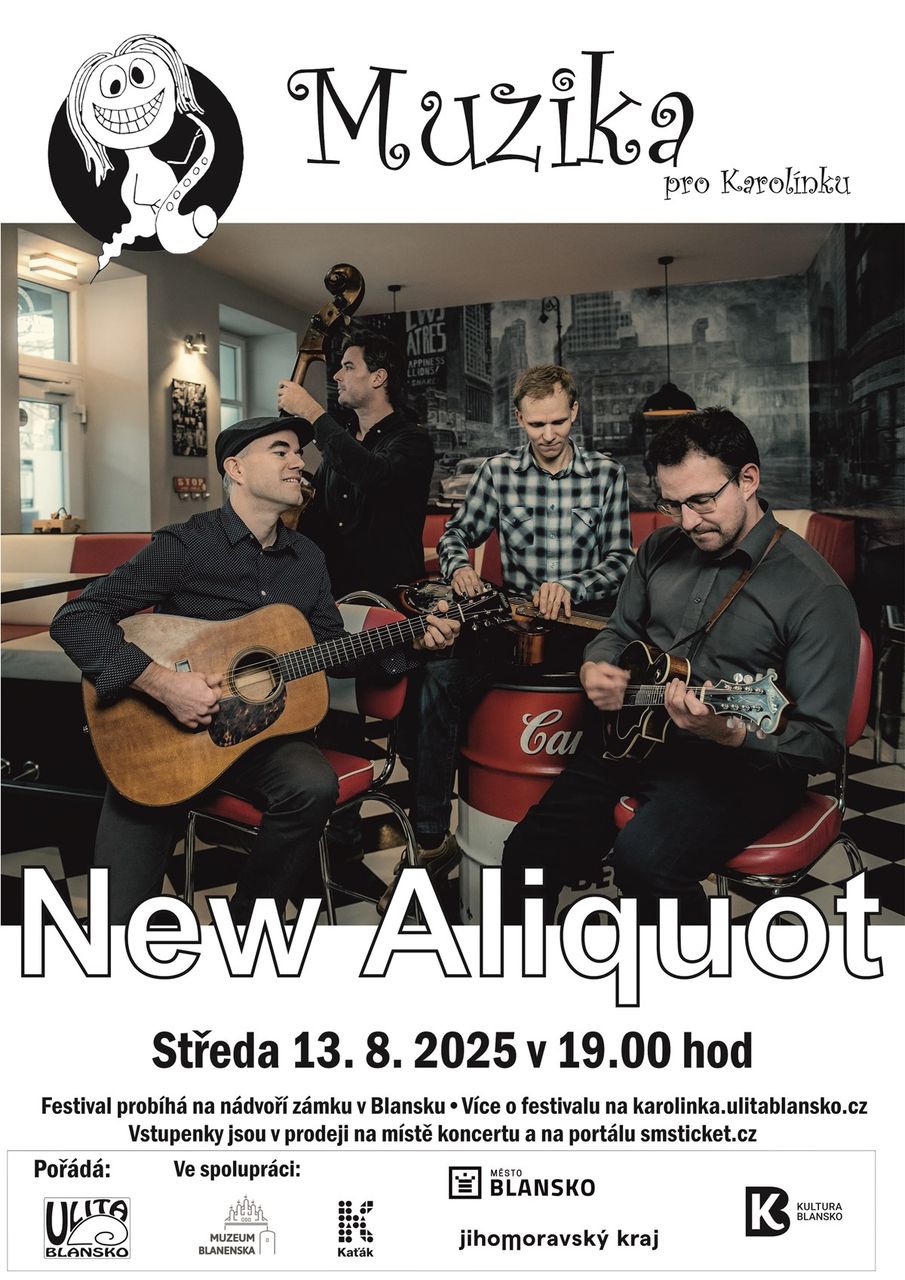 New Aliquot hraje bluegrassovou, new acoustic a folkovou hudbu. Její repertoár tvoří původní písně, instrumentální skladby a speciální úpravy méně známých písní z oblasti roots music. Kapela vznikla v roce 2016, kdy Pavel Duda (kontrabas, kytara, zpěv) doplnil trio Ondra Kozák (kytara, housle, zpěv), Vítek Hanulík (mandolína, kytara, zpěv) a Karel Začal (dobro, zpěv), kteří dříve působili v kapele Křeni (#1 European Bluegrass Band na La Roche Bluegrass Festival 2009). Členové kapely mají bezpočet zkušeností s mnoha oceňovanými kapelami a hudebními profesionály. New Aliquot získali v roce 2019 2. místo v soutěži kapel na bluegrassovém festivalu ve francouzském La Roche sur Foron a v témže roce vydali své první album It Takes Time. V roce 2024 vychází druhá, převážně autorská a z poloviny instrumentální deska Keep Going. Kapela každoročně v Jeseníkách pořádá hudební dílny „Zlatohorská hudební horečka“ a „Bluegrass Vegas“.