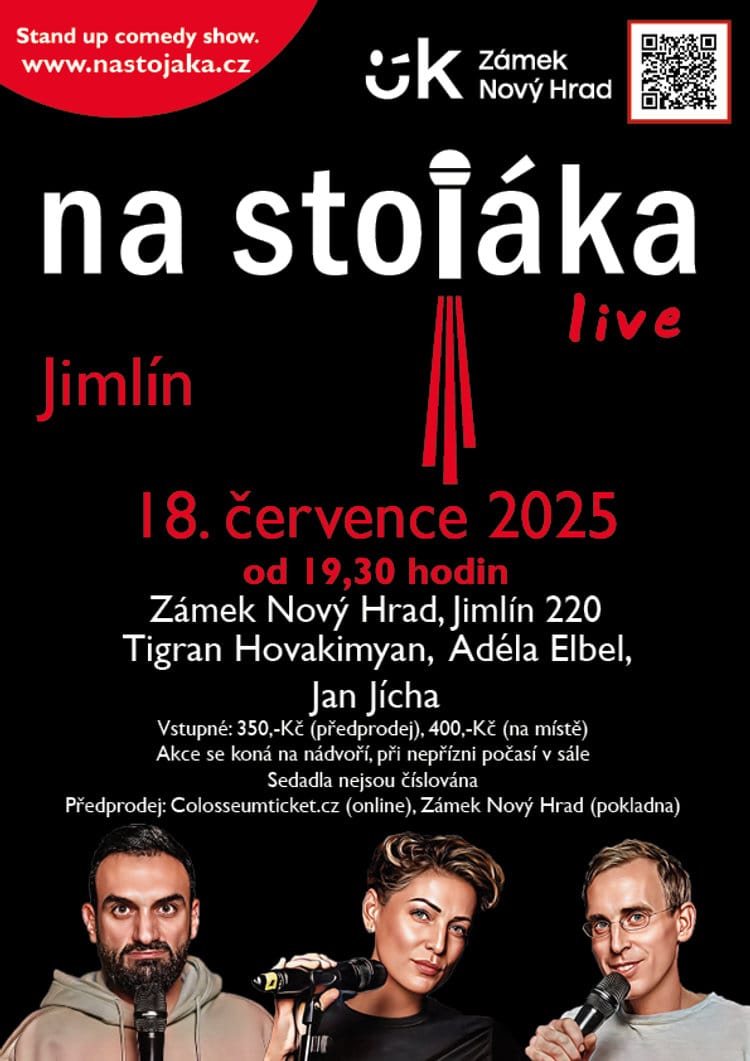 Stand up comedy show poprvé na Novém Hradě. Akce se koná na nádvoří, při nepřízni počasí v sále.
