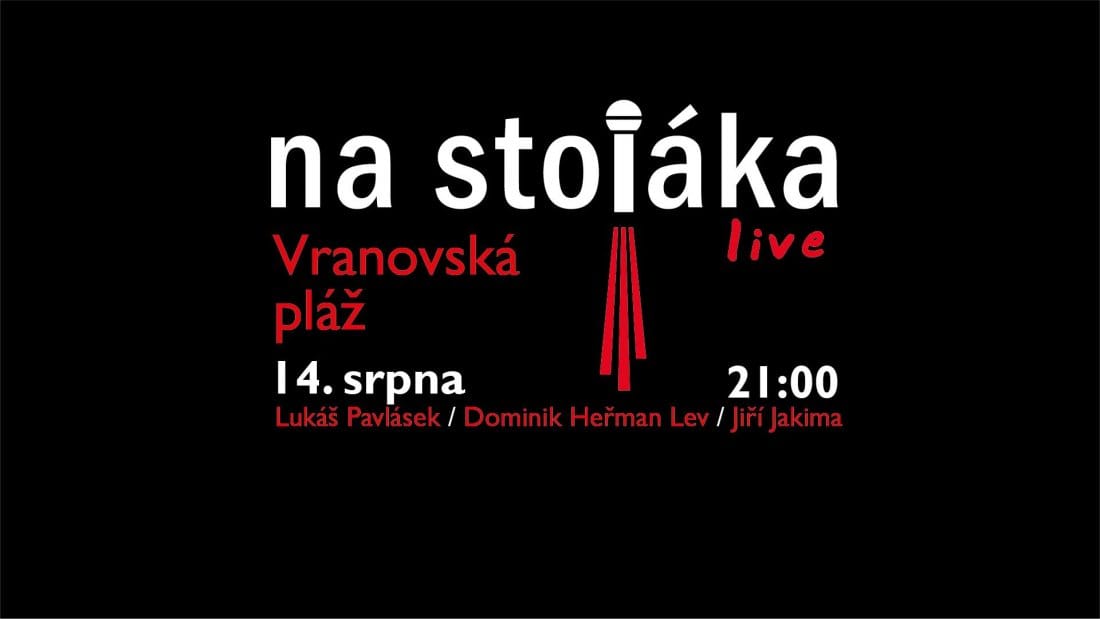 Nezaměnitelná stand-up comedy show Na stojáka! se z televizních obrazovek každé léto stěhuje na Vranovskou pláž, kde živě baví obecenstvo v restauraci U Karličky. Letos si v průběhu července a srpna můžete vybrat z 5 termínů: 10. 7., 24. 7., 31. 7., 7. 8. a 14. 8. 2025  (vše čtvrtky). Začátky vždy ve 21:00 hod. a pokaždé vystoupí jiná sestava účinkujících. Ve čtvrtek 14. srpna vystoupí trio: LUKÁŠ PAVLÁSEK, JIŘÍ JAKIMA, DOMINIK HEŘMAN LEV.