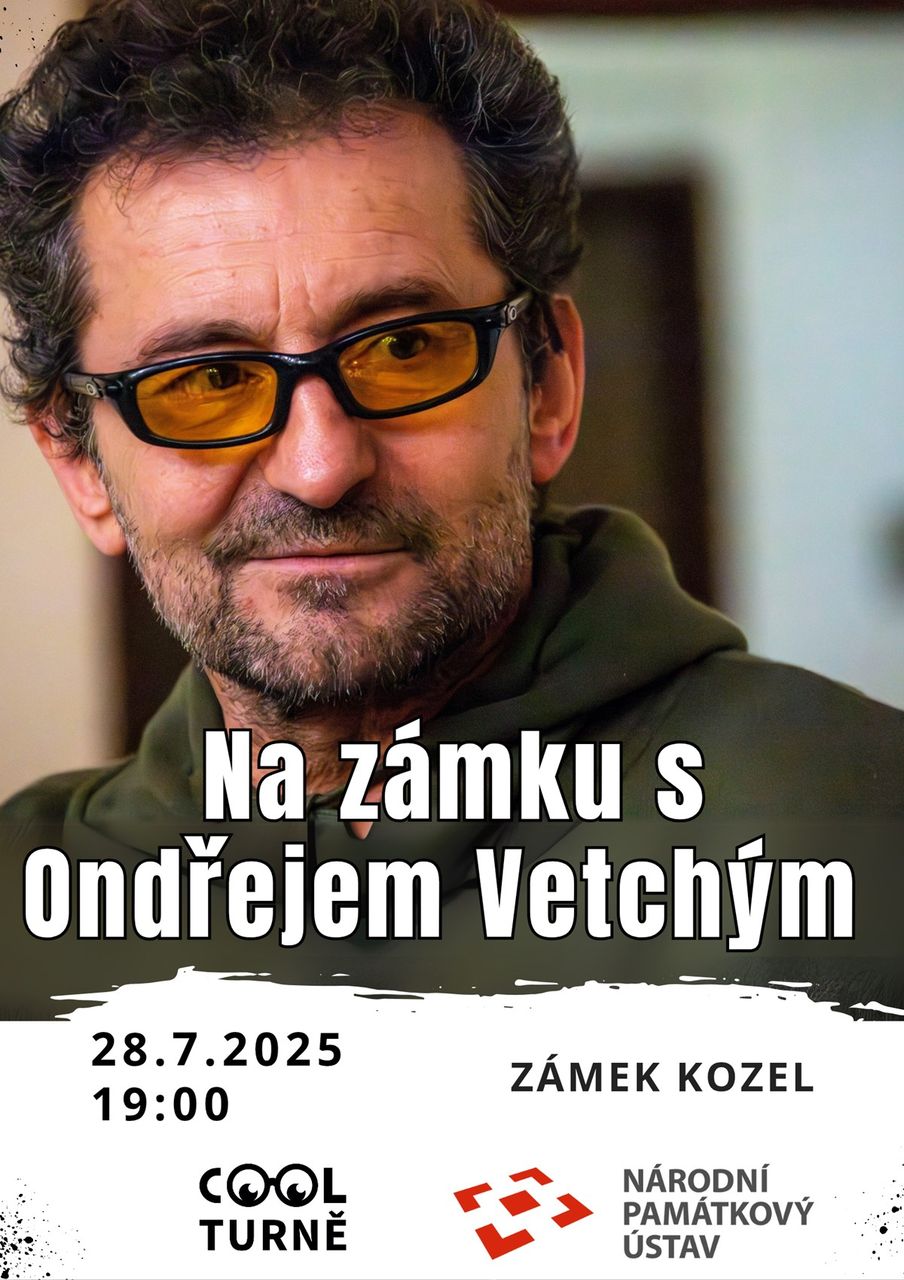 Nenechte si ujít jedinečný večer s oblíbeným hercem Ondřejem Vetchým na malebném zámku Kozel. Těšte se na neformální povídání plné historek ze zákulisí, vzpomínek na ikonické role a pohledu do života této výrazné osobnosti českého filmu a divadla.