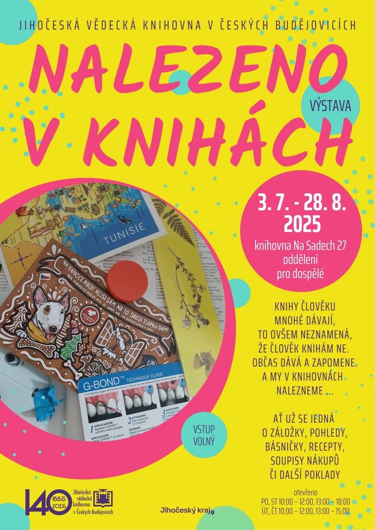 Výstava představuje neobvyklé nálezy, které lidé zanechali v knihách. Kromě příběhů totiž knihy často ukrývají i jiné poklady – záložky, pohledy, básničky, recepty, nákupní seznamy a další drobnosti, které čtenáři zapomněli nebo schválně vložili mezi stránky. Tato výstava odhaluje, co všechno lze v knihách nalézt.