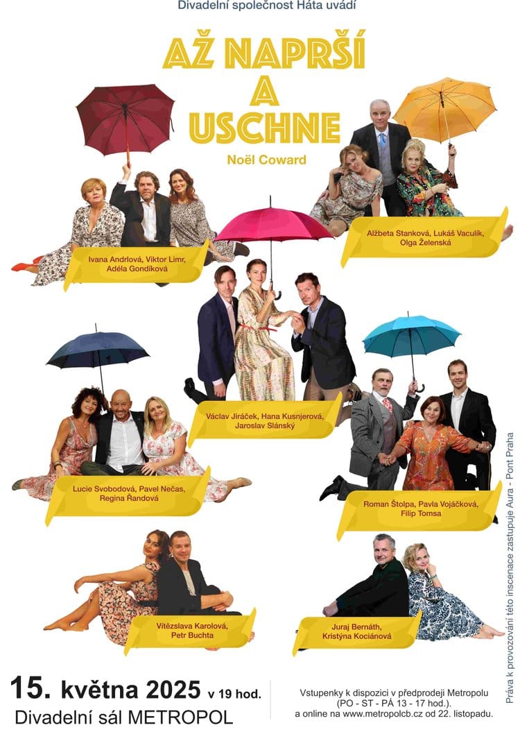 Divadelní společnost Háta Cowardova hořká komedie z roku 1925 se odehrává během jednoho červnového víkendu v letním domě manželů Blissových. Judith Blissová, bývalá herečka a její manžel, spisovatel David, tu tráví léto se svými dvěma dospívajícími dětmi. Nezávisle na sobě si každý z nich pozve na víkend hosta, na kterého se až dětinsky těší, bohužel jen do chvíle, než zjistí, že jejich host nebude v domě tím jediným. Od toho okamžiku hádky mezi sebestřednými členy rodiny převáží nad pohostinností a obyčejnou slušností. Život rodiny Blissových je takové malé peklíčko. Všichni se chovají nevyzrále a nedospěle. Hosté jsou zmateni a podléhají nástrahám milostných hrátek…