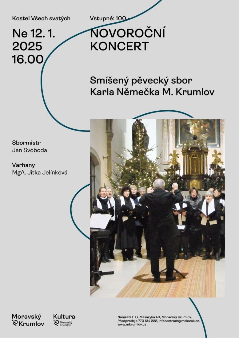 Bohatý kulturní program v Moravském Krumlově pokračuje i po vánočních svátcích. Tradiční Tříkrálový koncert letos vystřídá koncert Novoroční, a to až v neděli 12. ledna. Ve farním kostele Všech svatých se těšte od 16 hod. na slavnostní koncert v podání Pěveckého sboru Karla Němečka.