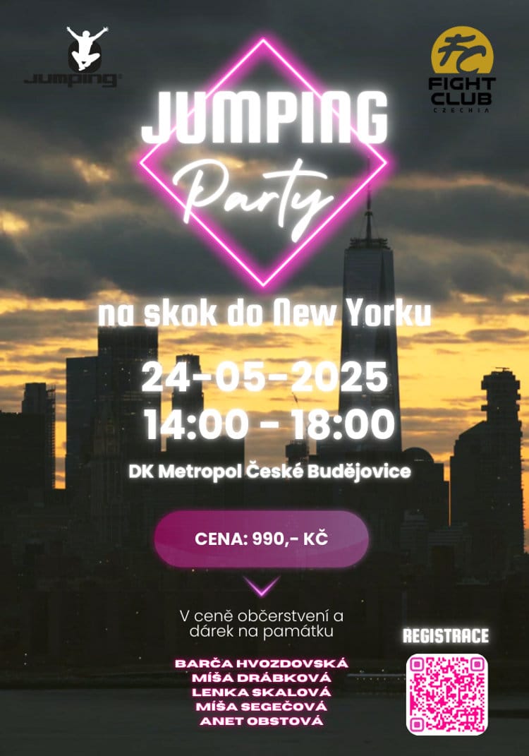 Jumping Party, aneb na skok do New Yorku je jedinečná sportovní akce určená všem milovníkům skákání na trampolínách. Inspiruj se seriály z prostředí New Yorku jako jsou např. Přátelé, či Fashion Weekem.