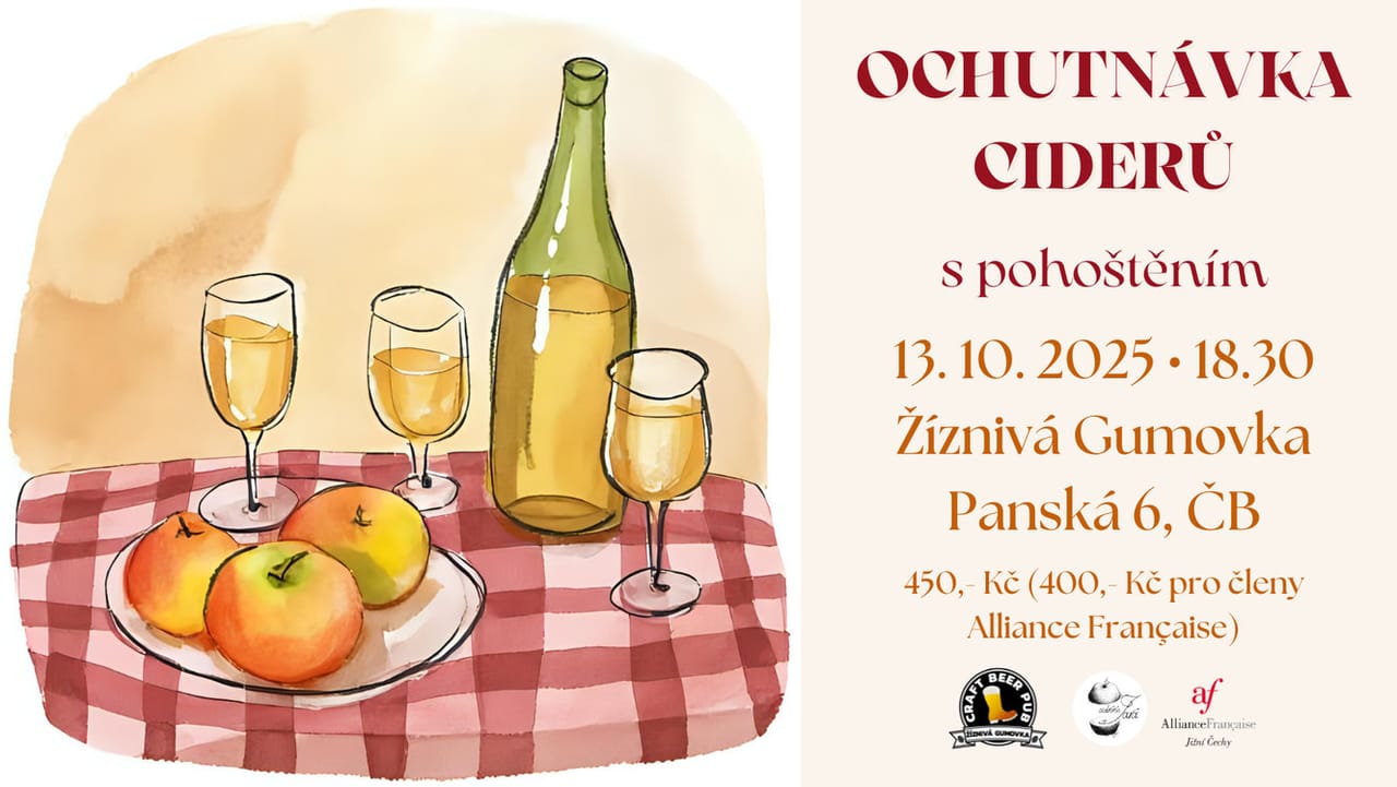 Žíznivá Gumovka vás zve na večerní ochutnávku přibližně dvanácti ciderů a souvisejících produktů. Ochutnávku povede František Apfelbeck, zakladatel kvasírna Jara.