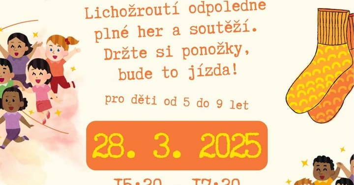 Lichožroutí odpoledne plné her a soutěží. Ddržte si ponožky bude to jízda. Pro děti od 5 do 9 let. Rezervace nutná.