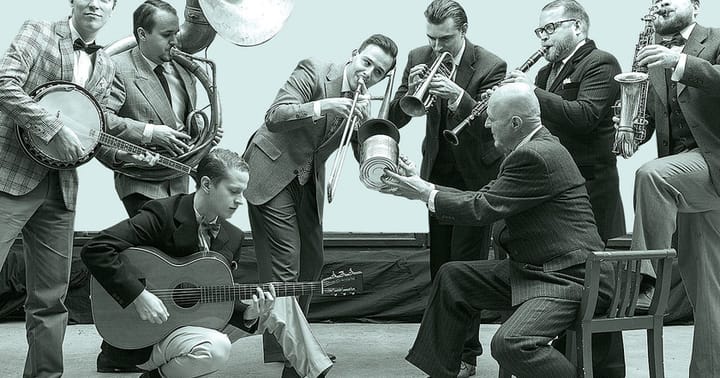 Originální pražský synkopický orchestr je přední český profesionální orchestr zabývající se autentickou interpretací raného amerického jazzu, blues a taneční hudby 20. let. Poprvé v Divadle Bez zábradlí v Praze.