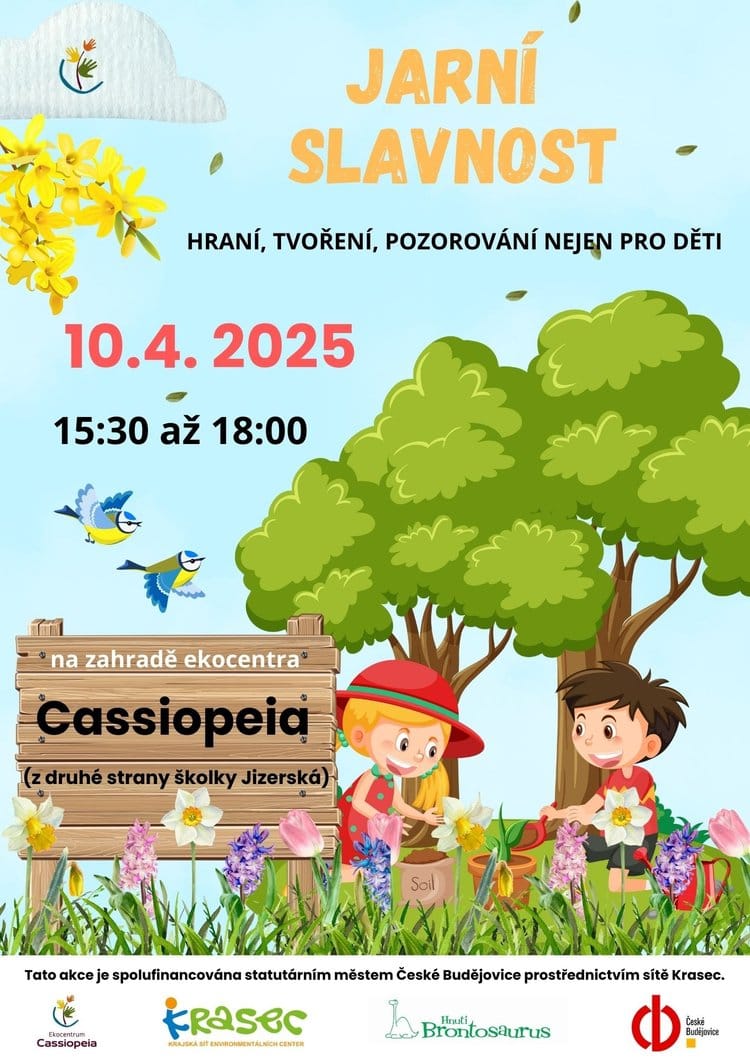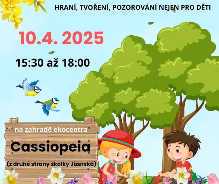 Srdečně vás zveme 10.4. od 15:30 do 18h na jarní akce pro děti v přírodní zahradě Ekocentra Cassiopeia. Připravíme aktivity, hry a tvoření inspirované děním v přírodě na jaře.