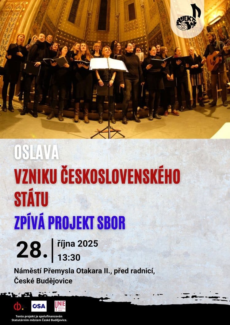 Pěvecký sbor Projekt SBOR hudebně doprovodí oficiální akci Oslava Dne vzniku samostatného československého státu v Českých Budějovicích.