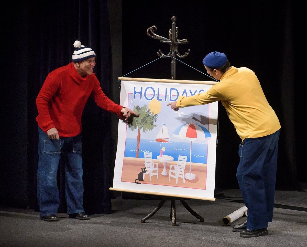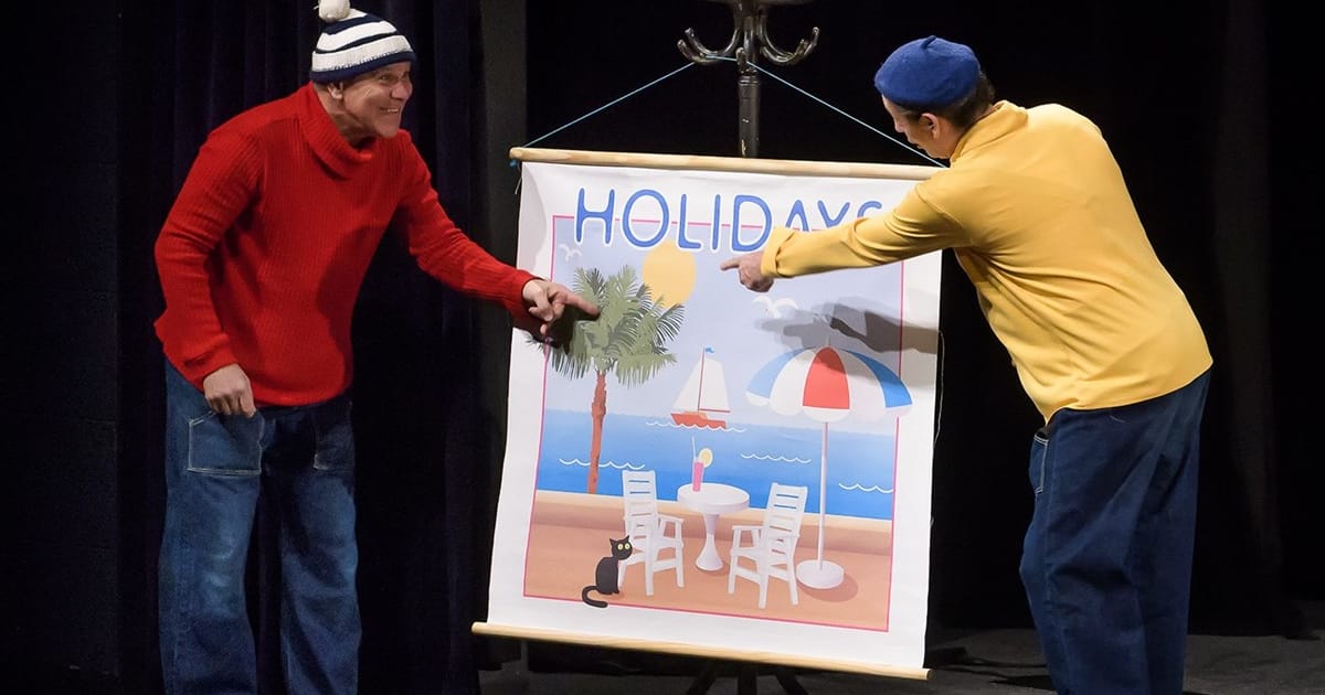 Představení nápaditě spojuje zdánlivě nespojitelné – animovaný loutkový film a hraný projev se živými herci – a vtipně rozvíjí anekdotickou zápletku o tom, jak se dva kutilové vydají na cesty, aby projeli světa kraj, a nakonec beztak zjistili, že doma je to nejlepší.