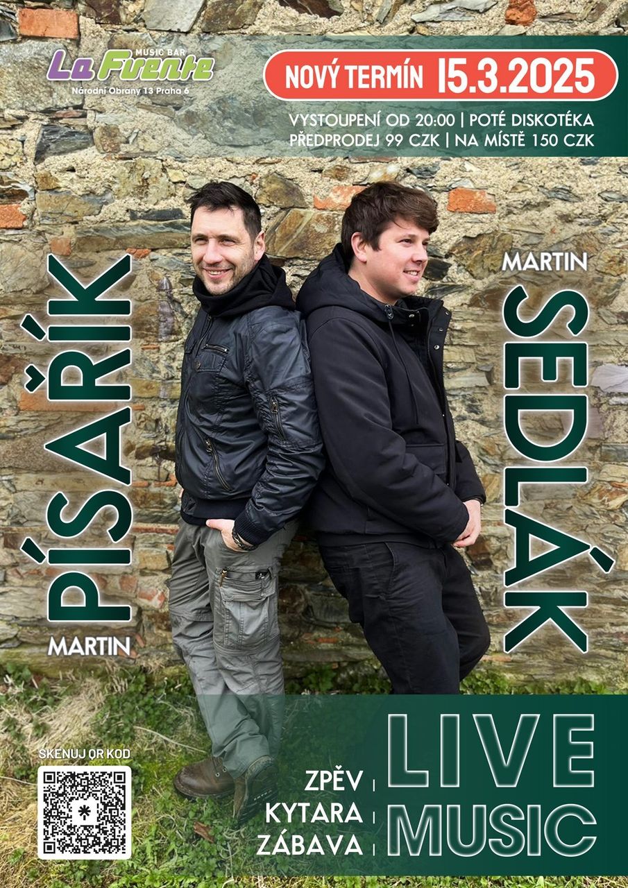 LIVE MUSIC večer s Martinem Písaříkem a Martinem Sedlákem v music baru La Fuente v sobotu 15.3.2025.