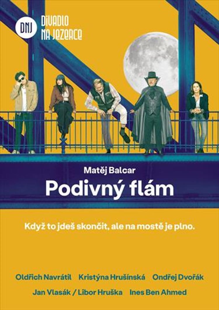 TRAGIKOMEDIE ze starého železničního mostu, který má být v brzké době stržen. Poslední noc, co je most otevřen veřejnosti, ho navštíví pětice lidí, kteří se náhodou rozhodli využít této poslední příležitosti a ukončit své životy skokem právě odtud. V záři půlnočního měsíce tak na mostě začíná nečekaně veselý podivný flám, během kterého skupinka řeší, v jakém pořadí kdo skočí, co koho vlastně na most přivedlo a jestli je smrt opravdu tím nejlepším řešením…