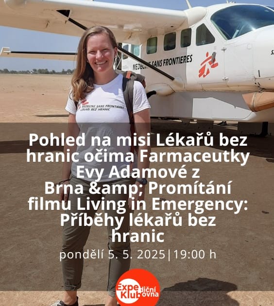 Můžete setěšit na dvě části. V té první si budete moci vyslechnout zážitky z mise v Jižním Súdánu z první ruky.Přednášet bude farmaceutka Eva Adamová. Po přednášce budeme pokračovat promítáním dokumentárního filmu Living in Emergency: Příběhy lékařů bez hranic: Vůbec poprvé ve své historii nechali Lékaři bez hranic filmovému štábu zcela volný přístup do svých projektů v terénu. Film „Living in Emergency: Příběhy Lékařů bez hranic“ sleduje příběhy čtyř lékařů ve válkou zmítaném Kongu a poválečné Libérii a způsob, jakým se vypořádávají s každodenními nástrahami práce v extrémních podmínkách. Dokument sleduje proměňující se zkušenost lékařů na misi od začátečníků až po ostřílené veterány – sleduje cestu, která formuje a přetváří jejich ideály, motivy i pohled na samotnou