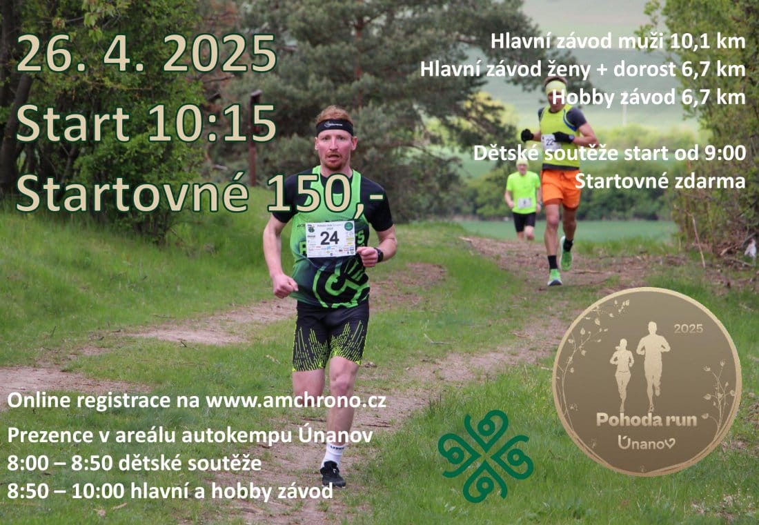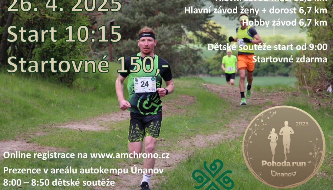 Přijďte se proběhnout v krásné přírodě a vyvětrat se od každodenních starostí. Pohoda Run je běžecký závod v okolí obce Únanov vedoucí převážně po lesních a polních cestách, a jen z malé části po asfaltce. Hlavní závod na 10,1 km doplňuje Hobby závod na 6,7 km a další dětské soutěže. Start i cíl jsou v hlavní bráně Autokempu Pohoda Únanov, kde je i potřebné zázemí včetně sprch a možnosti občerstvení.