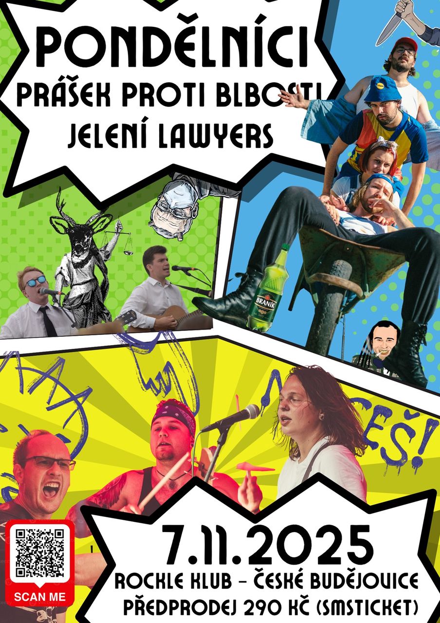 Pondělníci se vydávají opět se svojí nejhorší show do Českých Budějovic za doprovodu právnické lůzy Jelení Lawyers a lokalních dealerů Prášek proti Blbosti