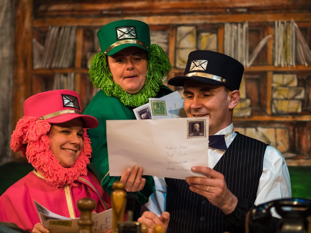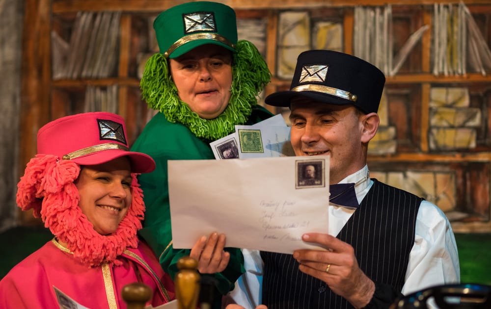 Přijďte se podívat na pošťáka Kolbabu, který rok a den putoval po celých Čechách, aby doručil dopis řidiče Frantíka, který psal své milované Mařence, ale je takový popleta, že zapomněl na dopis nalepit známku a napsat adresu. Co myslíte, podaří se panu pošťákovi najít Mařenku a doručit jí dopis, na který tak dlouho čeká? A víte, že na poště v noci žijí poštovní skřítci, kteří napravují, co člověk přes den pokazil? Přijďte se sami přesvědčit.