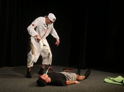Přicházejí pánové A , B a C Mnoho toho nenamluví, ale o tom celé naše představení je. NEBOJTE SE POHYBOVÉHO DIVADLA. Není to nic strašidelného, ba naopak, můžeme vám slíbit, že se dobře pobavíte. A nejen děti, ale jistojistě i dospěláci. Po krátké vtipné prezentaci toho, jaké možnosti pohybové divadlo dává, vám pak pánové A , B a C předvedou, jak to vypadá v praxi. Můžete se těšit na krkolomné pády, let letadlem, ale i cestu do vlastního nitra. Nemine vás ani umělecký výstup v podobě koncertu a užijeme si i trochu plovárny. A dost možná, že si leccos na vlastní kůži vyzkoušíte. Jak vidíte, o zábavu bude postaráno!