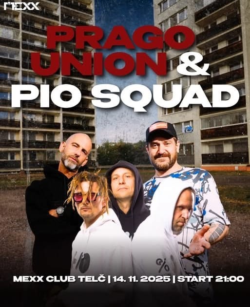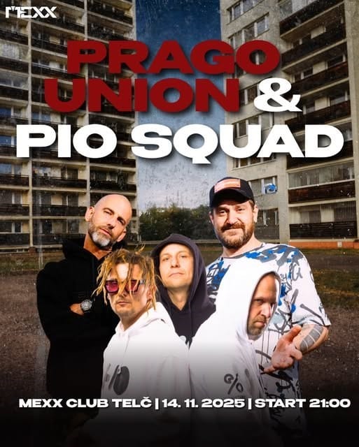 Připrav se na jedinečný večer, jaký Telč dlouho nezažila! Na jednom pódiu se totiž potkají dvě zásadní jména české hip-hopové scény — PRAGO UNION a PIO SQUAD.