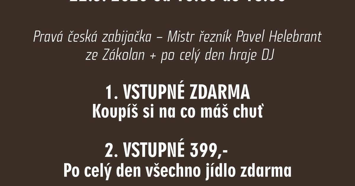 Pravá česká zabijačka – Mistr řezník Pavel Helebrant se Zákolan + po celý den hraje DJ