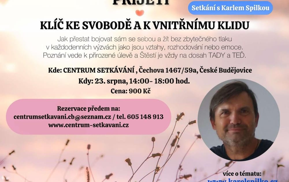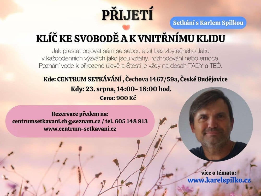 Toto setkání s Karlem Spilkou bude hlubokým ponorem do přijetí reality takové, jaká je. Přijetí není pasivita ani rezignace – je to naopak stav, ve kterém se objevuje skutečná svoboda.