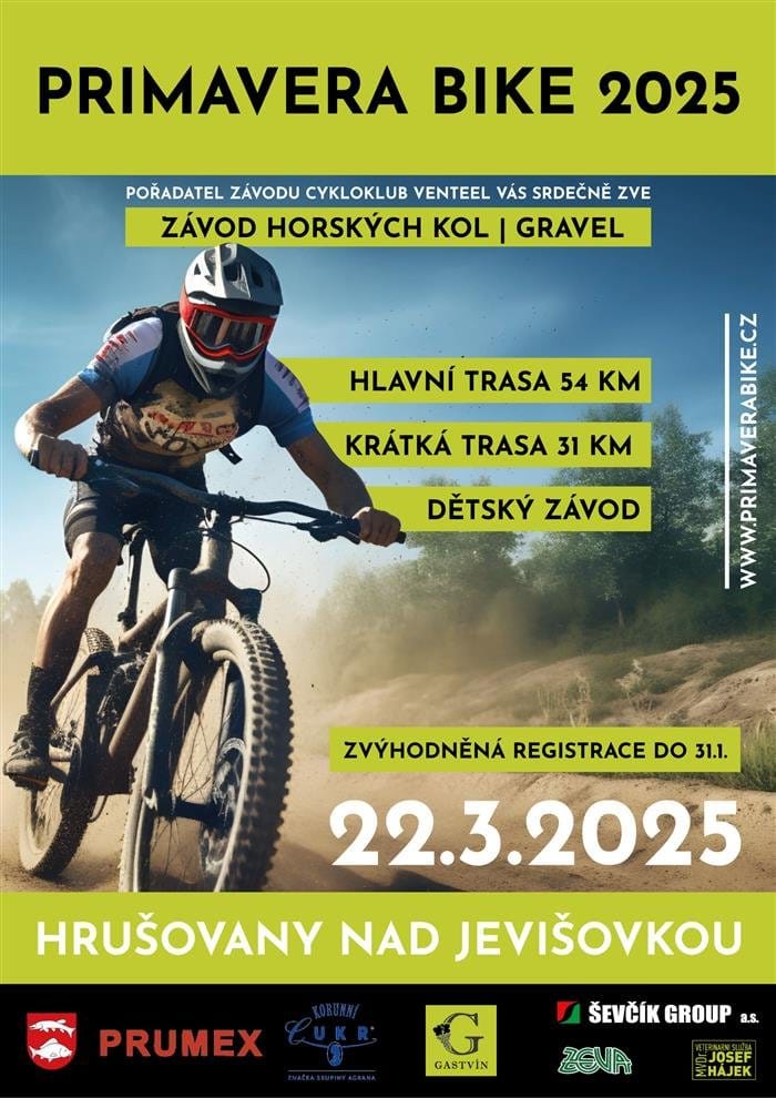 Připravte se na vzrušující sportovní zážitek a návrat legendárního závodu horských kol „Primavera Bike“! Po dlouhých letech se tento oblíbený závod vrací na scénu a přináší výzvu pro cyklisty všech věkových kategorií a dovedností. Vychutnejte si atmosféru závodu na náměstí v Hrušovanech nad Jevišovkou, kde závod začíná a končí. Těšte se na nádherné scenérie podél řeky Jevišovky, kde budete moci obdivovat krásy jižní Moravy.