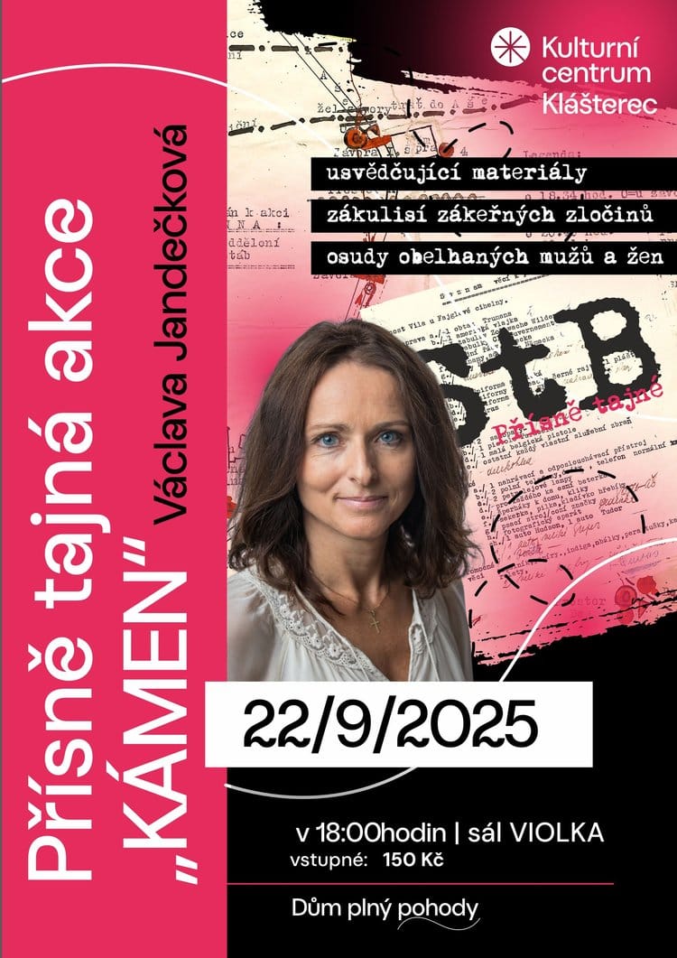 Poutavá přednáška s autentickými dokumenty a příběhy, které vás nenechají chladnými.Václava Jandečková – publicistka, badatelka, autorka knih o skrytých tvářích českých dějin.