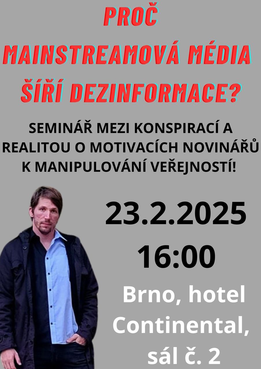 Záznam jednoho z mých seminářů z roku 2024 najdete zde: https://www.incorrect.cz/seminar-o-dezinformacich-mainstreamu-14-4-2024-zive/