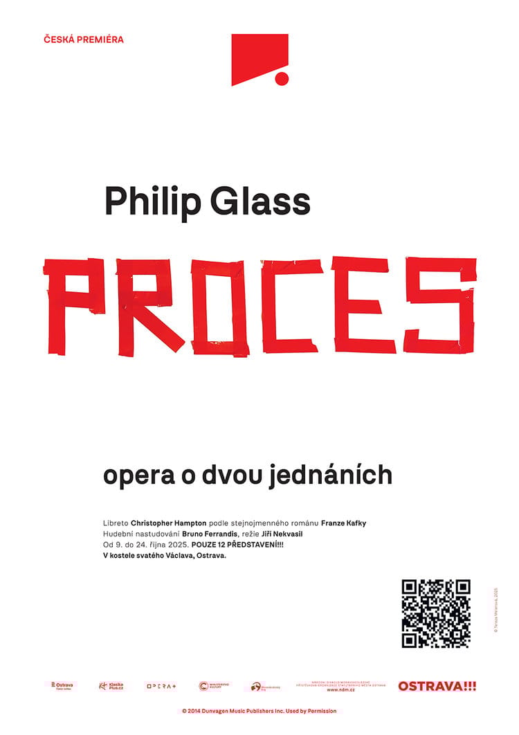 Libreto Christophera Hamptona sleduje příběh Josefa K., jenž je jednoho dne zatčen neznámou autoritou za nejasný zločin. Hrdina se snaží obhájit svou nevinu, ale jen marně se prodírá labyrintem soudních instancí a nesrozumitelných procedur. Kafkovo dílo o absurditě byrokracie a ztrátě kontroly nad vlastním osudem nazval Thomas Mann „nelogickou a stísněnou pošetilostí snů“. Glassova repetitivní hudba opakujících se rytmických a melodických vzorců přiléhavě umocňuje pocit úzkosti a odcizení typický pro byrokratická soukolí Kafkových světů