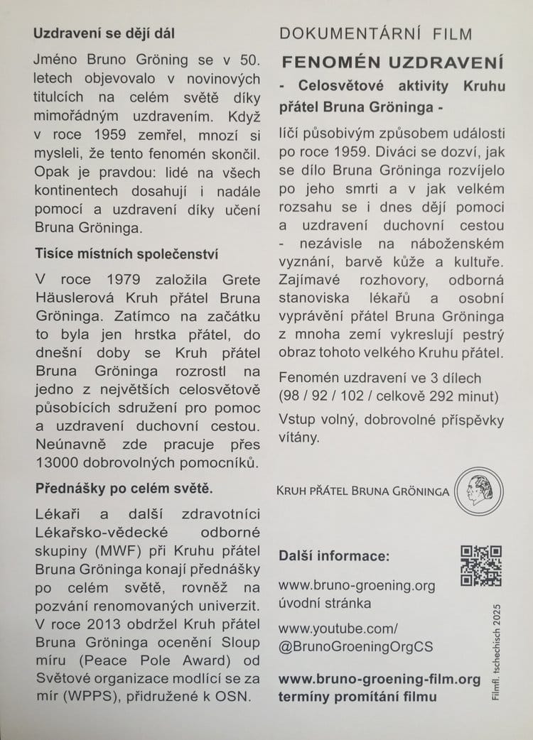 Dokument mapuje pomoci a uzdravení, kterých se lidem dostává napříč všemi kontinenty díky učení Bruna Gröninga i v současné době.