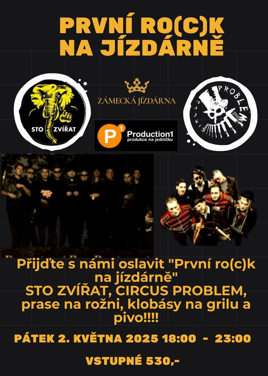 V květnu to bude rok, co funguje českokrumlovská Zámecká jízdárna pod taktovkou nového týmu :-). Přijďte s námi tento „ro(c)k“ oslavit spolu se skvělými kapelami Sto zvířat a Circus Problem.