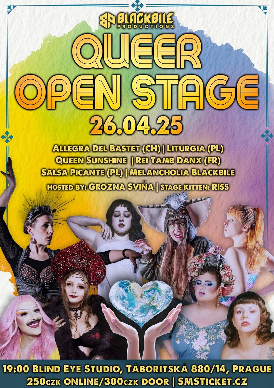 Drag queens, drag kings, burleska, vzdušná akrobacie, tanec i živý zpěv a další – každá naše Open Stage je jiná. Pokaždé se ale můžete těšit na nezapomenutelný večer a nesrovnatelně přátelskou atmosféru!